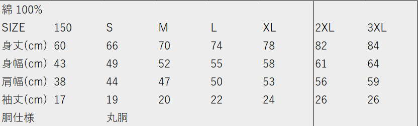商品サイズ / 価格:150,S,M,L,XL,2XL,3XL / 3,520円(税込)